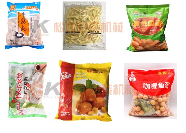 立式全自动速冻食品包装机 冷冻丸子称重包装设备包装袋子展示图