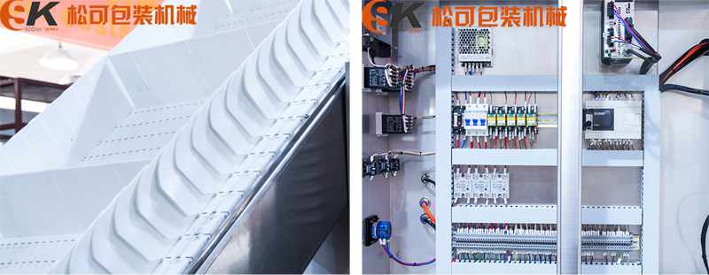 1.采用进口伺服电机控制,双拉膜系统,确保包装膜传送平稳,成袋平整。