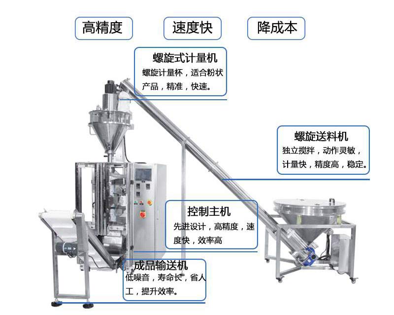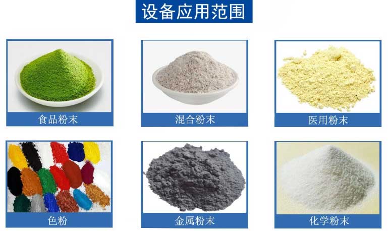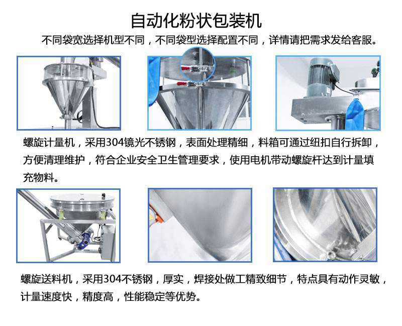 适用于包装流动性好的粉末粉剂产品:如淀粉、生粉、糯米粉、自发糕粉、豆粉、奶粉、色母粉、米粉、洗衣粉、辣椒粉、胡椒粉、咖啡粉等粉剂粉末产品。