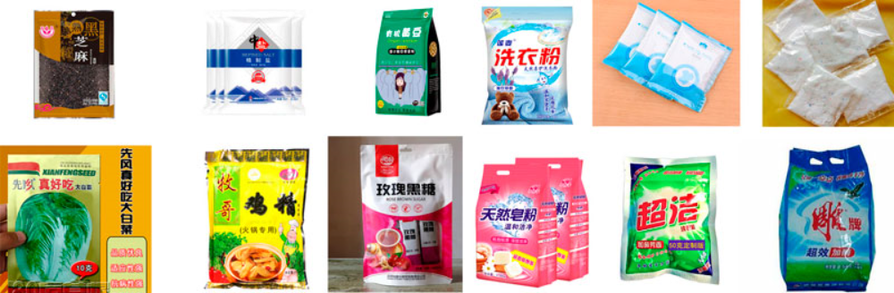 适合包装小颗粒及流动性好的粉剂,如:白糖、洗衣粉、昧精、鸡精、茶精、咖啡、芝麻、种子、大米等相类似物品。