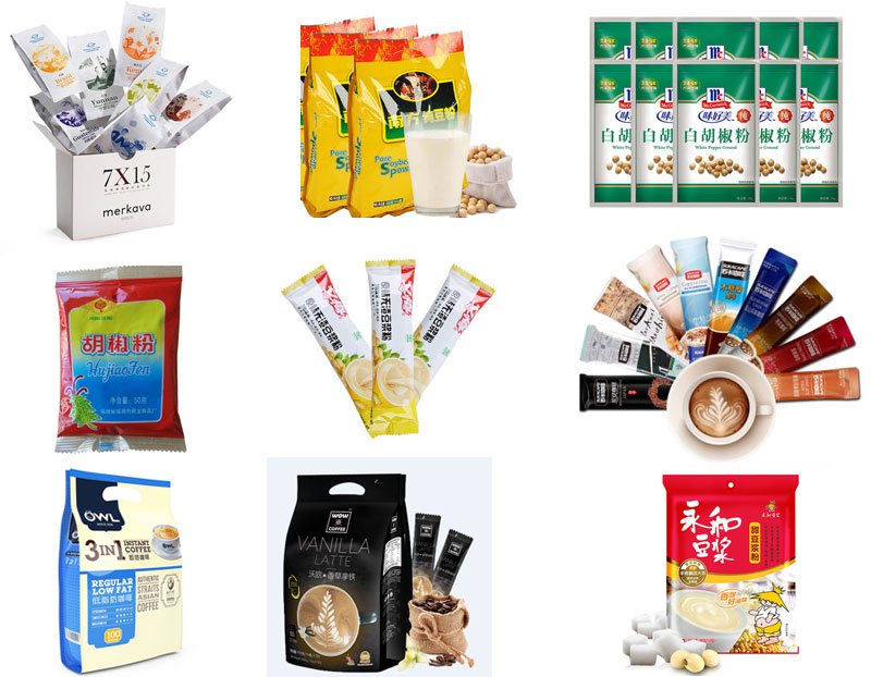 鸡粉,奶粉,豆粉,五香粉,面粉,咖哩粉,蒜香粉,发酵粉,辣椒粉,嫩肉粉,玉米粉,奶茶粉,檽米粉,芝麻糊粉,营养米粉,婴儿米糊粉。粘米粉,淀粉,肉桂粉,胡椒粉,淮山粉,大蒜粉,玉米浓汤料。花椒粉。钛白粉,生粉,牛肉粉,排骨粉,吉士粉。番薯粉,麦粉,发糕粉,蛋糕粉,凉粉豆粉,黑胡椒粉,奥尔良烤鸡粉。八角粉,火锅陪粉,火锅配料,火锅底粉,十三香粉,汤圆粉)等粉状类的计量包装,集计量。制袋,包装,封口。打印。计数于一体。